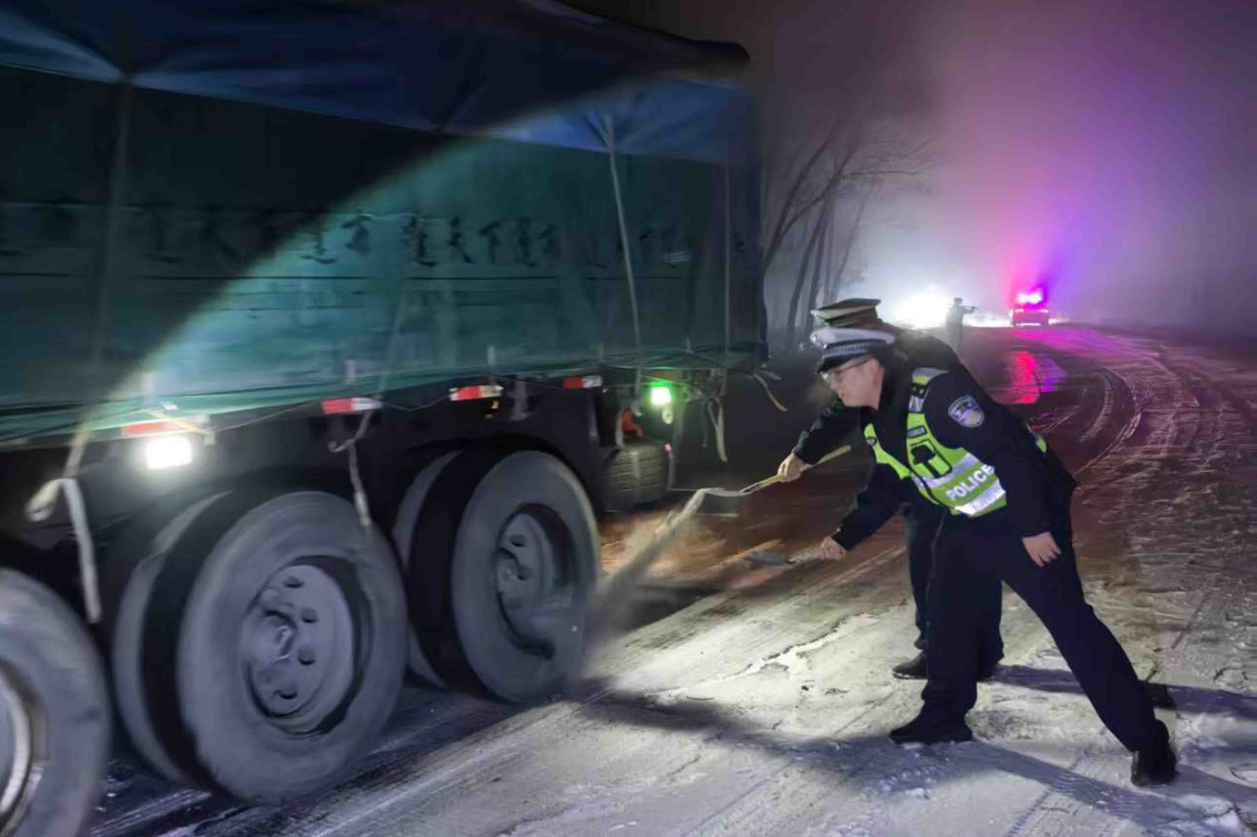 五大連池市公安局反恐與交巡特警大隊(duì)開展路面防滑處置 筑牢交通安全屏障