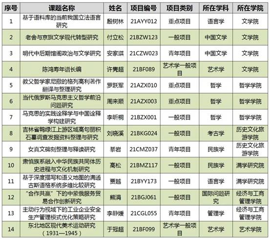 黑龍江經濟網訊(黑龍江日報全媒體見習記者董廣碩 商祺)日前,全國哲學社會科學工作辦公室公布了2021年國家社科基金年度項目和青年項目立項名單。本年度國家社科基金共立項目4642項,其中重點項目370項,每項資助35萬元;一般項目3169項,青年項目1103項,資助額度均為20萬元。連同之前公布的藝術學科項目,黑龍江大學共獲得2021年國家社科基金年度項目和青年項目14項。其中重點項目3項、一般項目6項、青年項目3項、藝術學一般項目2項,立項總數居全省第1位。