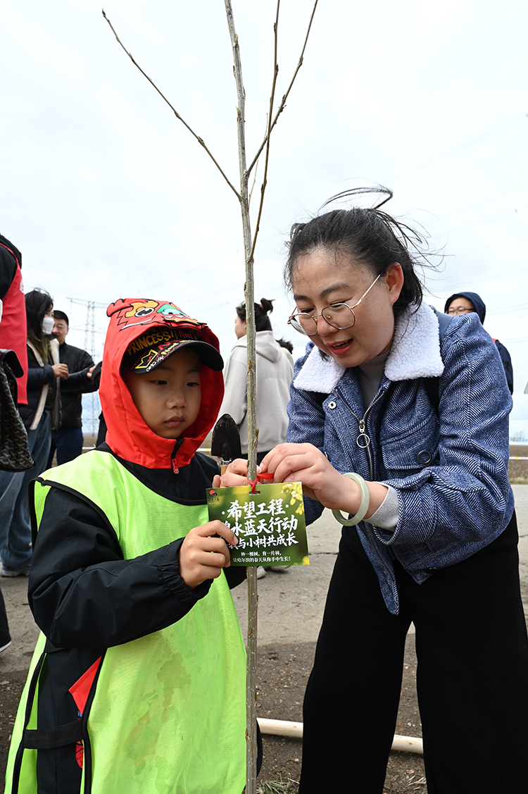 當(dāng)日上午,義務(wù)植樹(shù)隊(duì)伍集合出發(fā),分組領(lǐng)取工具并開(kāi)展植樹(shù)技術(shù)交底?;顒?dòng)現(xiàn)場(chǎng),大家分工協(xié)作,揮鍬培土、扶苗澆水,共栽種樹(shù)苗100余株。每棵新植樹(shù)苗均懸掛“寄語(yǔ)卡片”,青少年們用文字和繪畫(huà)表達(dá)對(duì)未來(lái)的祝福,童心港灣學(xué)生代表以“‘我與小樹(shù)共成長(zhǎng)’ 愛(ài)綠護(hù)綠環(huán)保行”為主題,將生態(tài)環(huán)保與愛(ài)黨愛(ài)國(guó)情懷深度融合。隨后,舉行“希望林”揭牌儀式,象征著又一片綠色希望落地扎根。