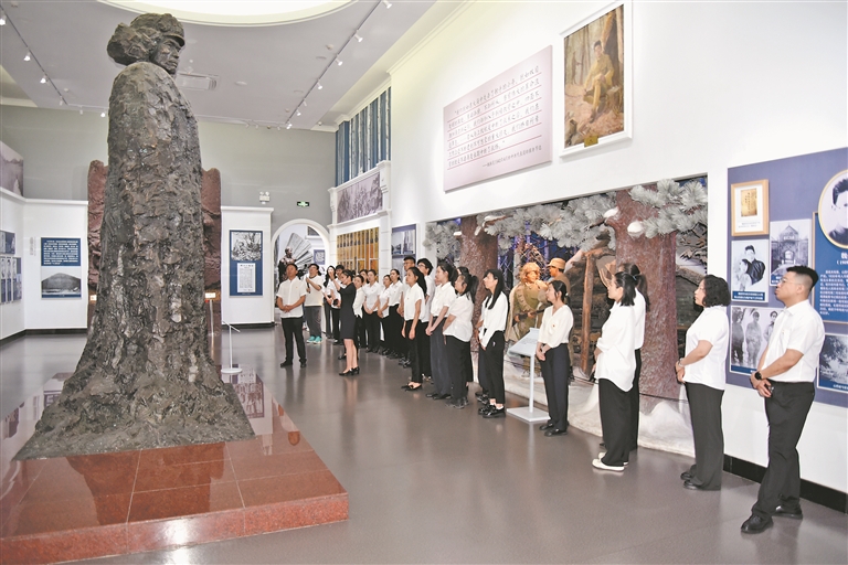 紀(jì)念館內(nèi),講解員深情朗誦《盧溝曉月》,將人們的思緒帶回“盧溝橋事變”那個山河破碎、狼煙四起的夜晚。隨后,大家跟隨講解員參觀了“黑土英魂陳列”,在一件件珍貴文物與歷史畫卷中重溫崢嶸歲月,感悟英烈精神。