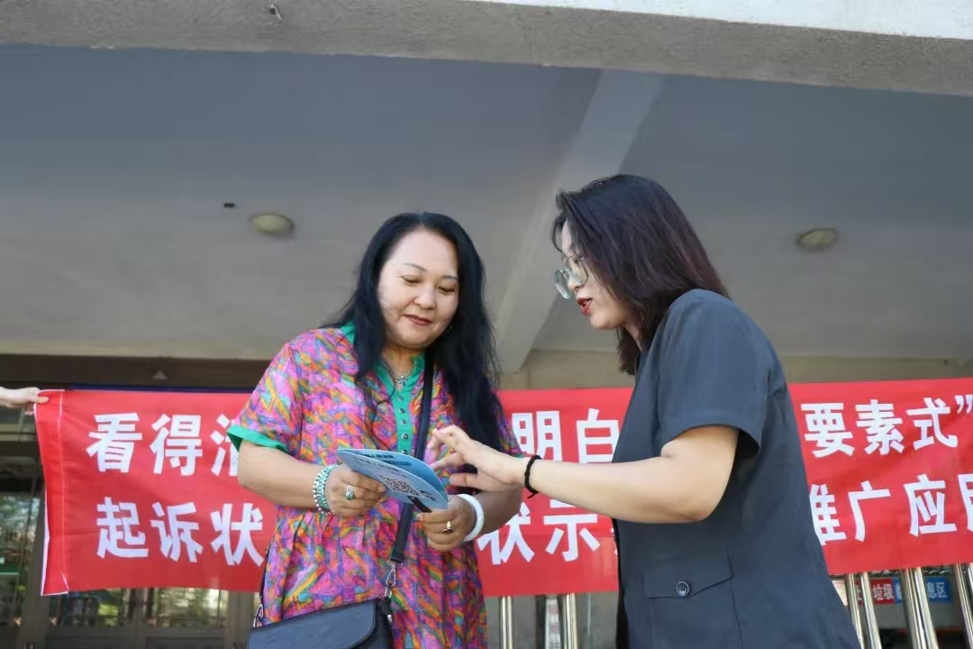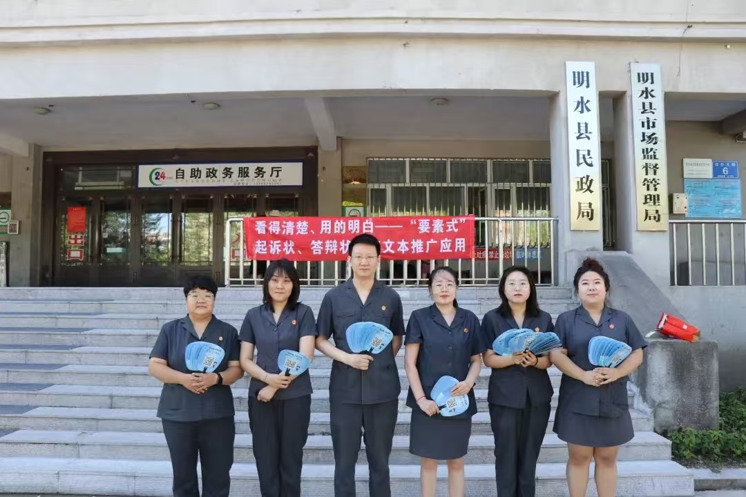 黑龍江經(jīng)濟網(wǎng)訊(董慧瑩 戴琳 記者馬朝林)為深入貫徹落實《最高人民法院、司法部、中華全國律師協(xié)會關(guān)于印發(fā)部分案件民事起訴狀、答辯狀示范文本(試行)的通知》文件精神,進一步提升訴訟效率,優(yōu)化司法服務(wù),明水縣人民法院立案庭積極行動,于7月15日開展了形式多樣的“要素式”起訴狀宣傳推廣活動。