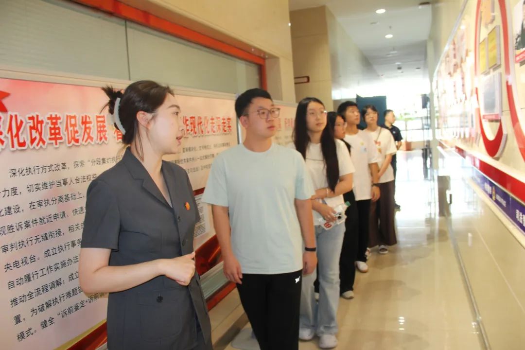 為了讓實(shí)習(xí)生們盡快了解法院工作,熟悉工作環(huán)境,肇東市人民法院組織實(shí)習(xí)生們參加了第166次“公眾開(kāi)放日”活動(dòng)?;顒?dòng)中,在講解員的引領(lǐng)下,大家先后參觀了法院審判法庭大廳、法警辦公室、科技法庭、少年審判庭、訴訟服務(wù)中心、干警體能訓(xùn)練中心、黨史活動(dòng)室、閱覽室等場(chǎng)所,讓大家了解了法院的工作環(huán)境、工作氛圍以及即將開(kāi)始的實(shí)習(xí)工作中的重點(diǎn)內(nèi)容。
