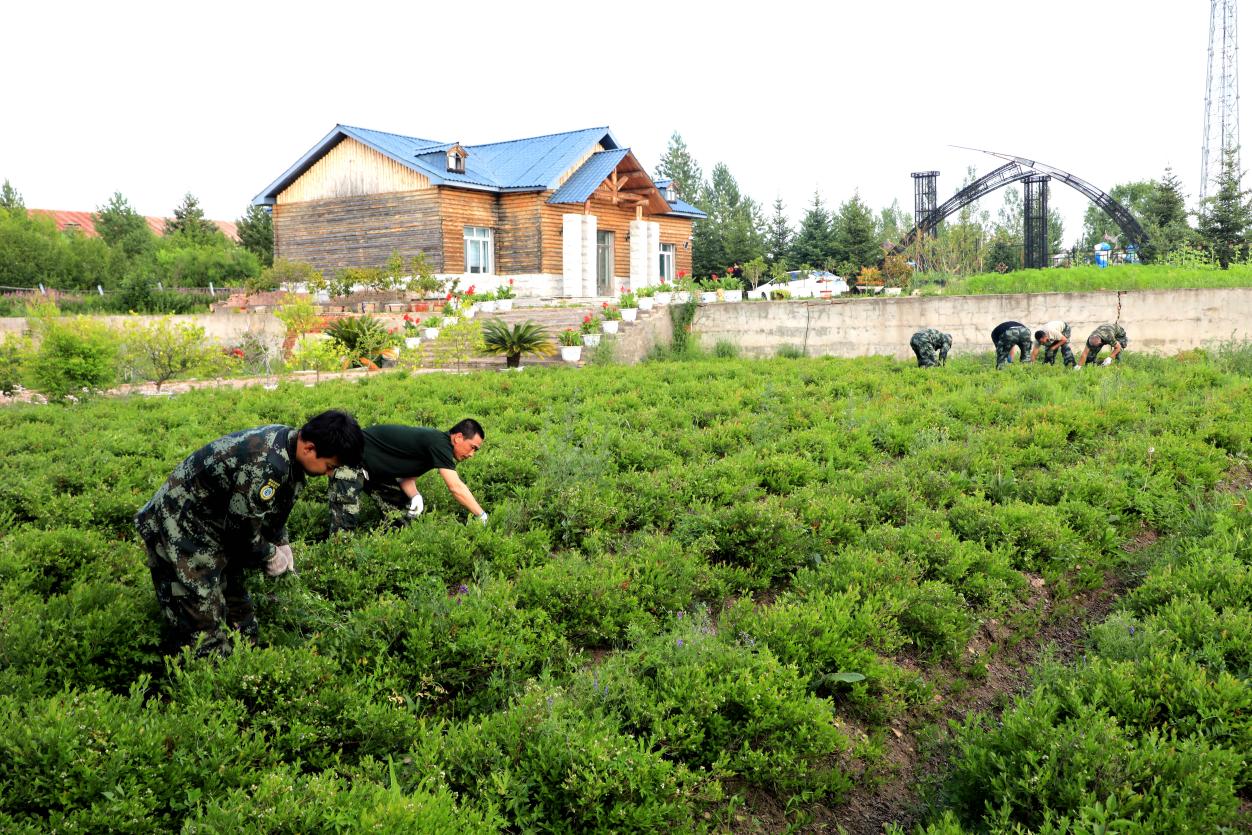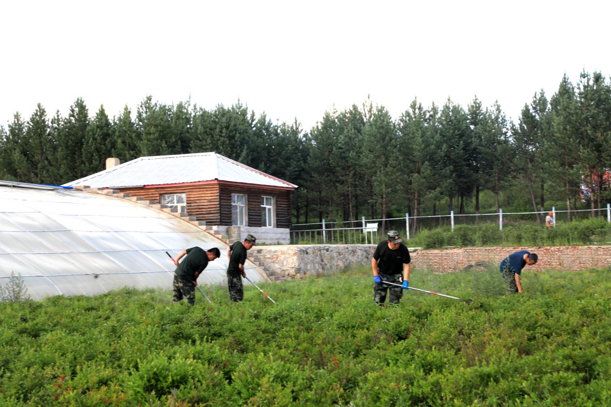 阿木爾林業(yè)局“森林衛(wèi)士”在藍(lán)莓園參與田間管理實(shí)踐活動(dòng)(王力 攝)