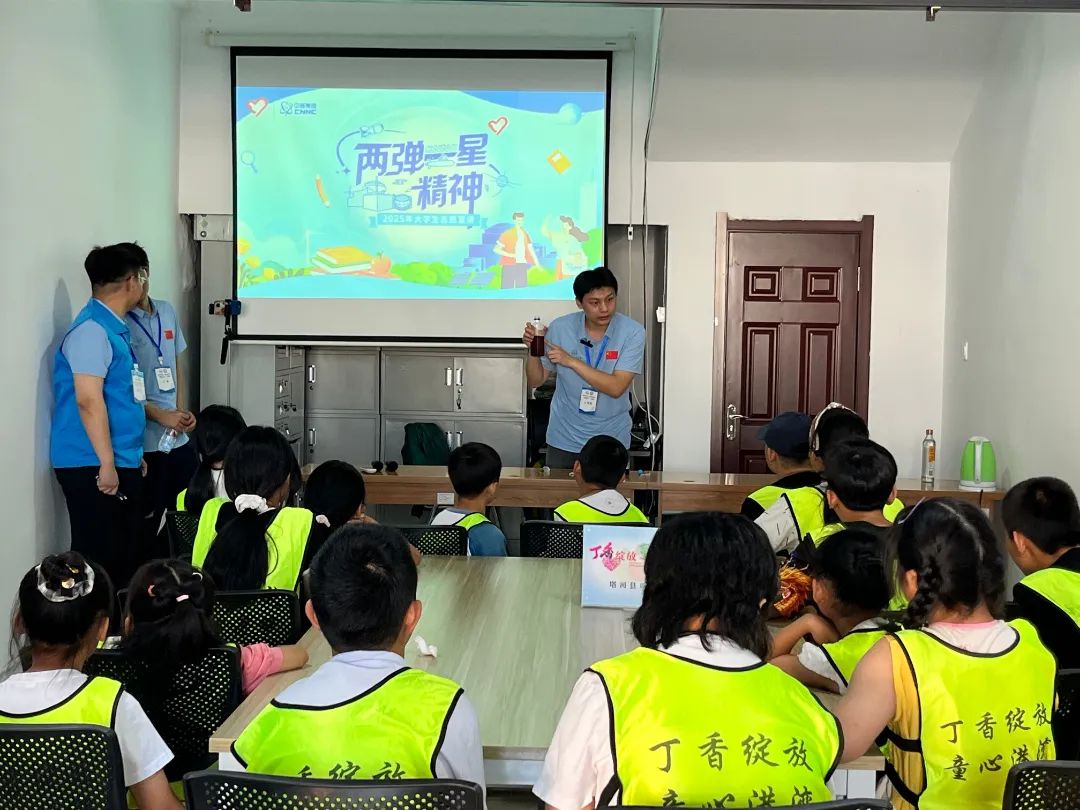宣講團(tuán)的成員們以核能、輻射等科學(xué)知識,開啟了一場沉浸式宣傳“兩彈一星”精神的小課堂。并在實(shí)踐環(huán)節(jié)里,向孩子們展示了酸堿反應(yīng)、氧化還原反應(yīng)等實(shí)驗(yàn),并手把手教孩子們制作了屬于自己的“小火箭”,帶領(lǐng)大家試飛,孩子們充分體會到了航天的魅力。