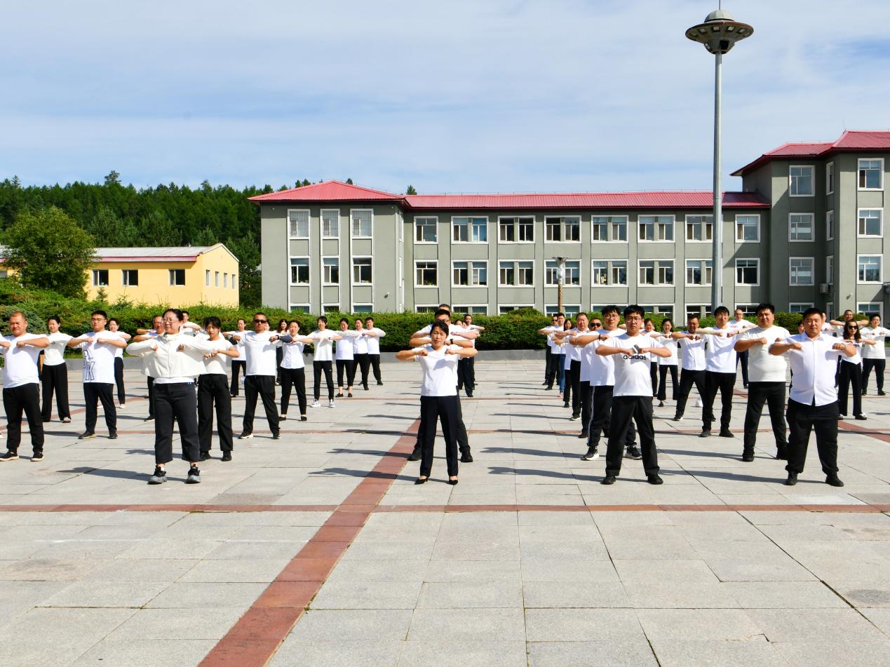 新林林業(yè)局機關(guān)干部職工在做工間操(薛忠旭 攝)