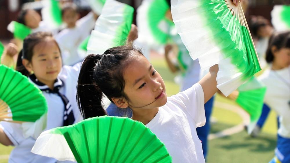 “我在學(xué)校的秧歌社團(tuán)學(xué)會了舞扇子、走十字步,跟著鼓點扭秧歌,感受到了傳統(tǒng)藝術(shù)的魅力,身體協(xié)調(diào)性越來越好了。”一年五班學(xué)生劉沐宸興奮地說。這正是第四小學(xué)非遺美育體系的一個生動縮影。