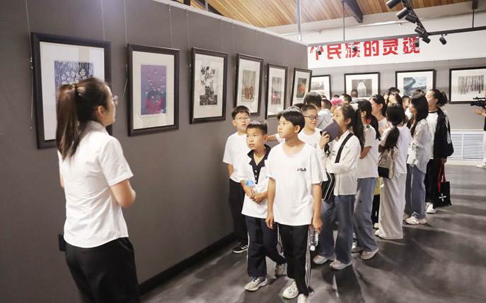 夏令營(yíng)學(xué)員參觀(guān)十八驛森林風(fēng)情版畫(huà)展銷(xiāo)館(王志程攝)