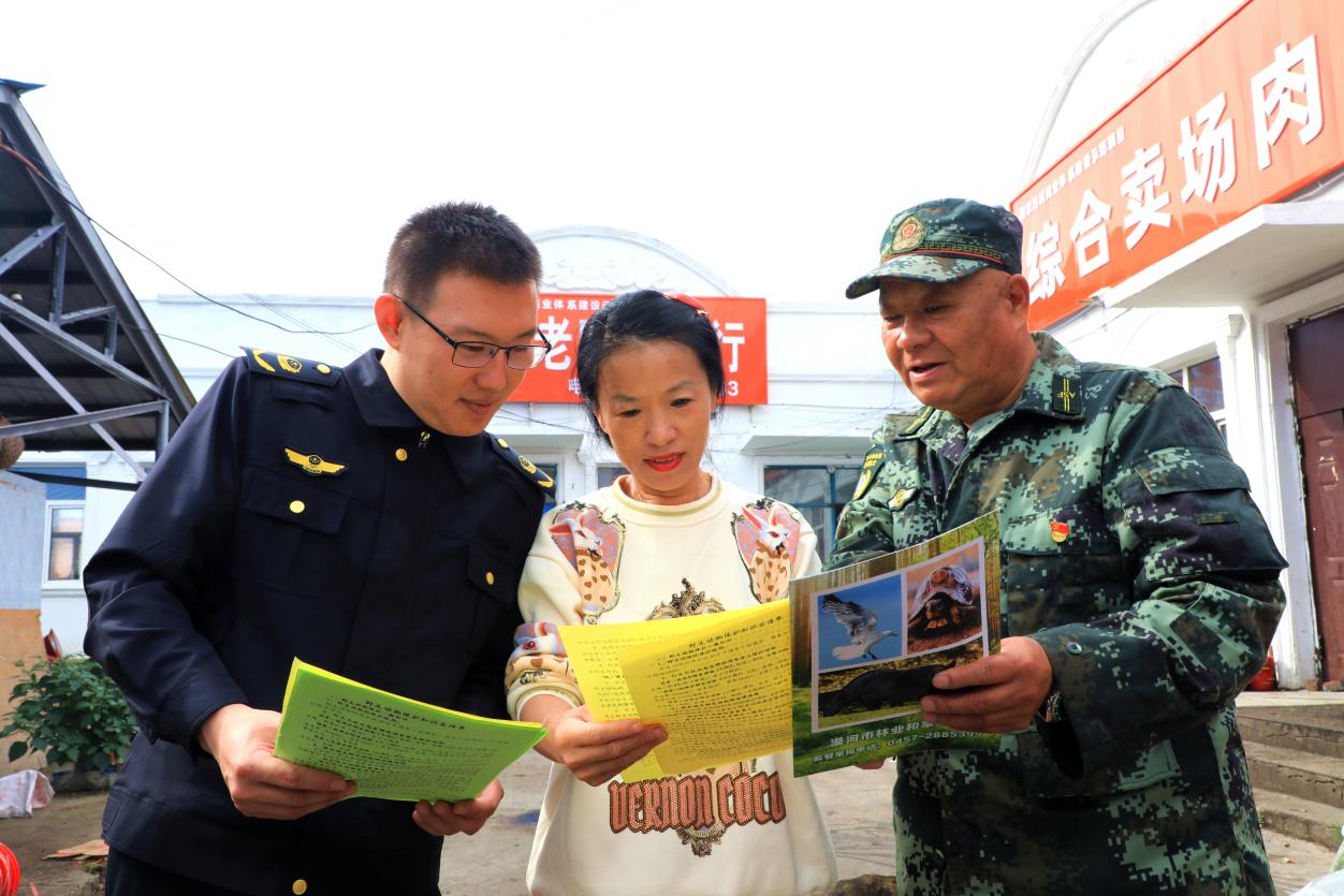活動中,林業(yè)局森林資源管理科聯(lián)合駐阿資源監(jiān)督辦、嶺峰國家級自然保護區(qū)管理局、阿木爾公安分局、阿木爾濕地公園管理局及阿木爾市場監(jiān)督管理局共同參與。為提升全社會愛鳥護鳥意識,工作人員在中華路設(shè)立宣傳臺、懸掛宣傳條幅,向過往居民、經(jīng)營業(yè)戶詳細講解網(wǎng)鳥、套鳥、毒鳥以及撿拾鳥蛋、毀壞鳥窩等行為的違法性,并明確依據(jù)《森林法》《野生動植物保護法》等法律法規(guī),此類行為將承擔相應的法律制裁責任。同時,通過散發(fā)宣傳單,向居民普及保護鳥類的科學知識、法律知識及重大意義,動員居民積極參與到鳥類重要繁殖地、越冬地、遷飛停歇地等重點區(qū)域的保護工作中,營造全局參與、人人有責的良好氛圍。