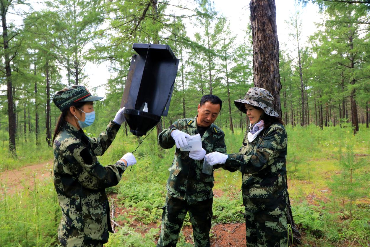 阿木爾林業(yè)局防治站工作人員利用誘捕器,調(diào)查以梢斑螟為主要對(duì)象的鉆蛀類害蟲(王力 攝)