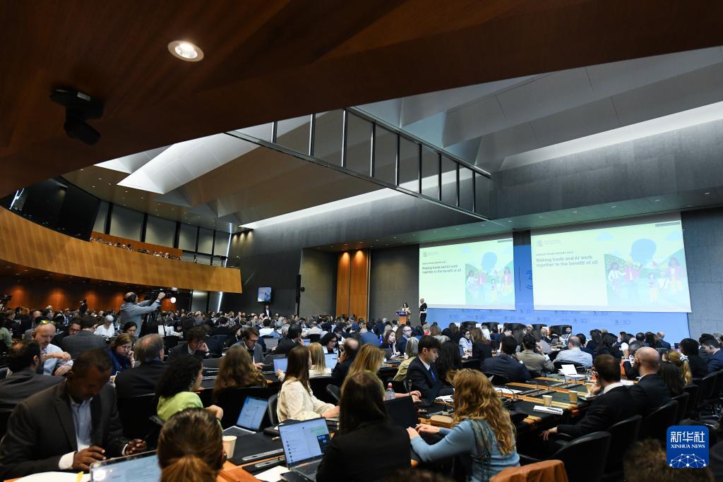 9月17日,在瑞士日內(nèi)瓦世貿(mào)組織總部,參會者聆聽《2025世界貿(mào)易報告》發(fā)布會報告。新華社記者 連漪 攝