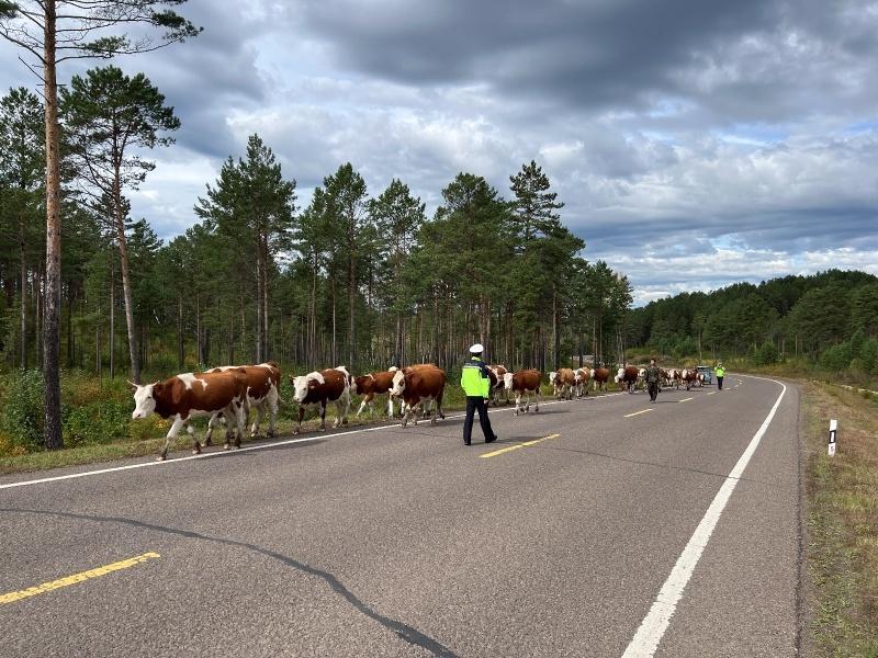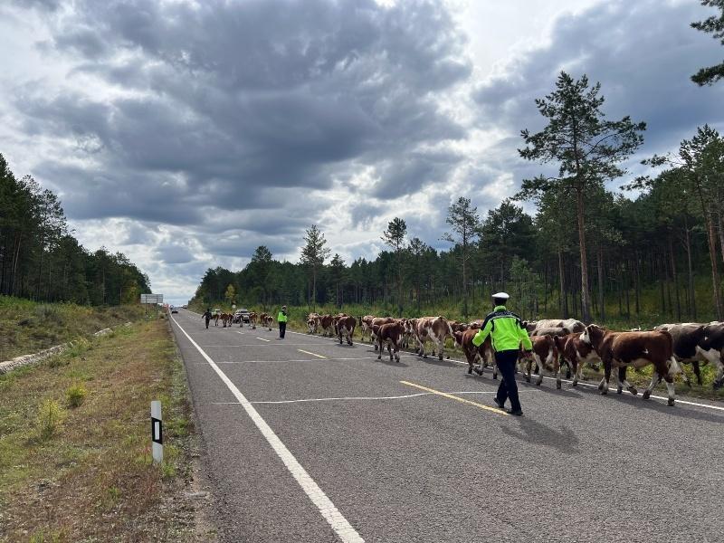 每次牲畜轉(zhuǎn)場(chǎng)大多由一名養(yǎng)殖戶照料,因牛群數(shù)量多、分散廣,養(yǎng)殖戶根本顧不過(guò)來(lái),部分牛時(shí)不時(shí)竄向路中央,過(guò)往車輛只能小心翼翼避讓,交通安全隱患重重。針對(duì)轉(zhuǎn)場(chǎng)路線長(zhǎng)、牲畜數(shù)量多、車輛與畜群混行等實(shí)際情況,呼瑪縣公安局交通管理大隊(duì)提前謀劃、精心部署。轉(zhuǎn)場(chǎng)當(dāng)日,天還未亮,民輔警們就已在集合點(diǎn)等候。他們與養(yǎng)殖戶一起檢查牛群狀態(tài)、整理物資,隨后便踏上了轉(zhuǎn)場(chǎng)之路。一路上,民輔警們分散在牛群周圍,有的在前方引導(dǎo),及時(shí)疏導(dǎo)交通,指揮過(guò)往車輛減速慢行,確保車輛與畜群有序通行;有的在后方壓陣,防止牛群掉隊(duì);有的在兩側(cè)警戒,用溫和的呼喊聲和手勢(shì)指揮牛群前進(jìn)方向。
