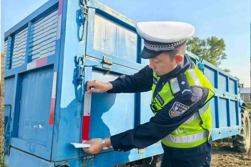 黑龍江經(jīng)濟(jì)網(wǎng)訊(李寶 劉昌龍 記者梁新立)9月23日,五大連池市公安局反恐與交巡特警大隊(duì)持續(xù)深化農(nóng)用車(chē)“亮尾”行動(dòng),以“嚴(yán)管控、廣宣傳”的工作思路,全面加強(qiáng)秋收期間農(nóng)村道路交通安全管理,有效預(yù)防和減少因農(nóng)用車(chē)尾部標(biāo)識(shí)不清引發(fā)的夜間交通事故,為群眾秋收時(shí)節(jié)出行安全點(diǎn)亮“警示燈”。