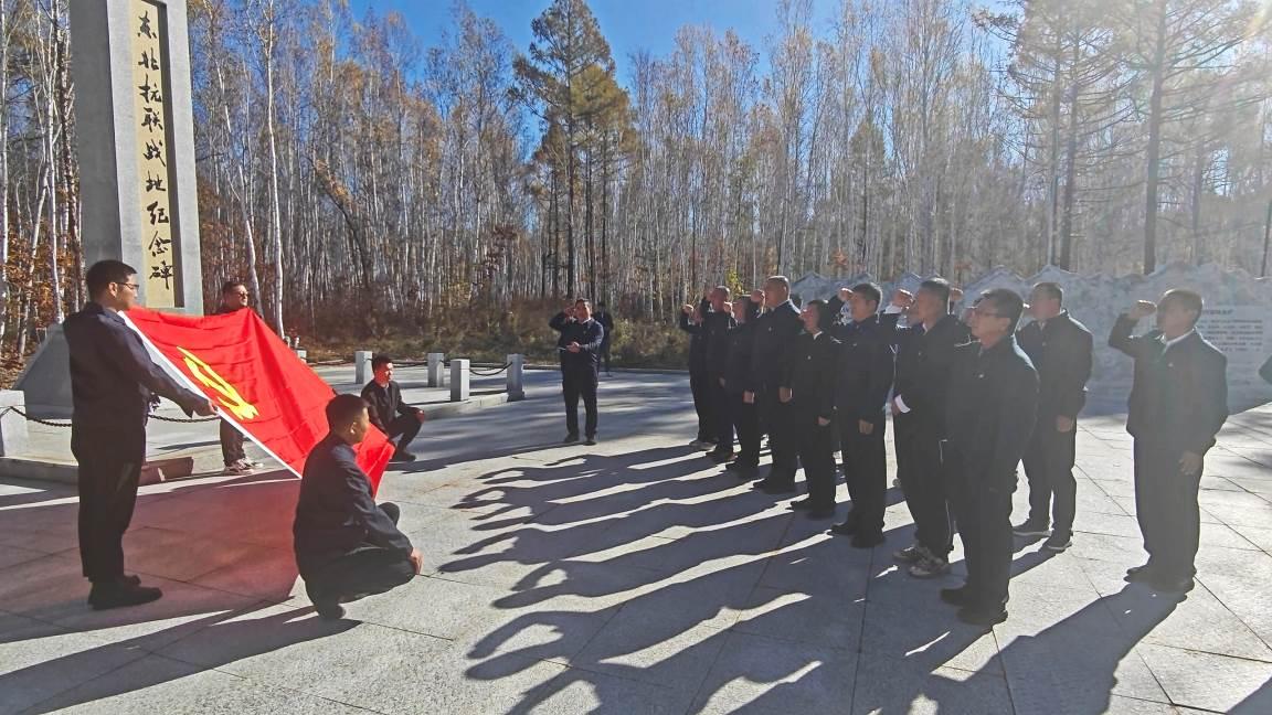 默哀結(jié)束后,重溫入黨誓詞環(huán)節(jié)將活動(dòng)推向高潮。在領(lǐng)誓人的帶領(lǐng)下,全體黨員面向鮮紅的黨旗,舉起右拳,莊嚴(yán)宣讀入黨誓詞。鏗鏘有力的誓言回蕩在紀(jì)念碑前,不僅是對(duì)入黨初心的重溫,更是對(duì)使命擔(dān)當(dāng)?shù)脑俅纬兄Z,進(jìn)一步強(qiáng)化了黨員的身份意識(shí)與責(zé)任意識(shí)。