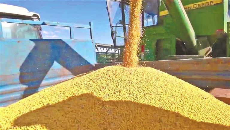 在海倫市前進鎮(zhèn)雙泉村大豆農(nóng)業(yè)示范園區(qū),1510畝核心種植區(qū)宛如一塊碩大的金色地毯,格外引人注目。大型收割機轟鳴作業(yè),將飽滿的豆莢卷入機身,留下整齊的根茬,處處是忙碌的豐收景象。采訪中記者了解到,這里是全國大豆產(chǎn)業(yè)發(fā)展的“標(biāo)桿示范區(qū)”,該園區(qū)由軍琢農(nóng)機專業(yè)合作社負(fù)責(zé)種植經(jīng)營管理,海倫市農(nóng)業(yè)技術(shù)推廣中心的科技人員常年駐守田間,從種植方案制定,到田間技術(shù)培訓(xùn),再到生產(chǎn)過程中的實時指導(dǎo),全程為大豆種植“把脈護航”。