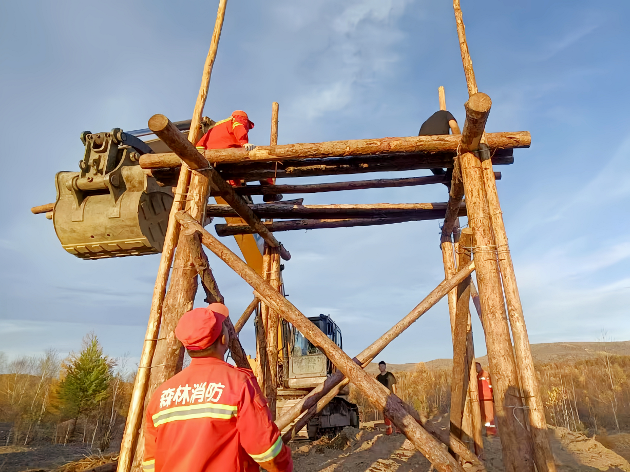 新林林業(yè)局工作人員在搭建臨時(shí)鳥類觀測(cè)平臺(tái)(耿子健 攝)