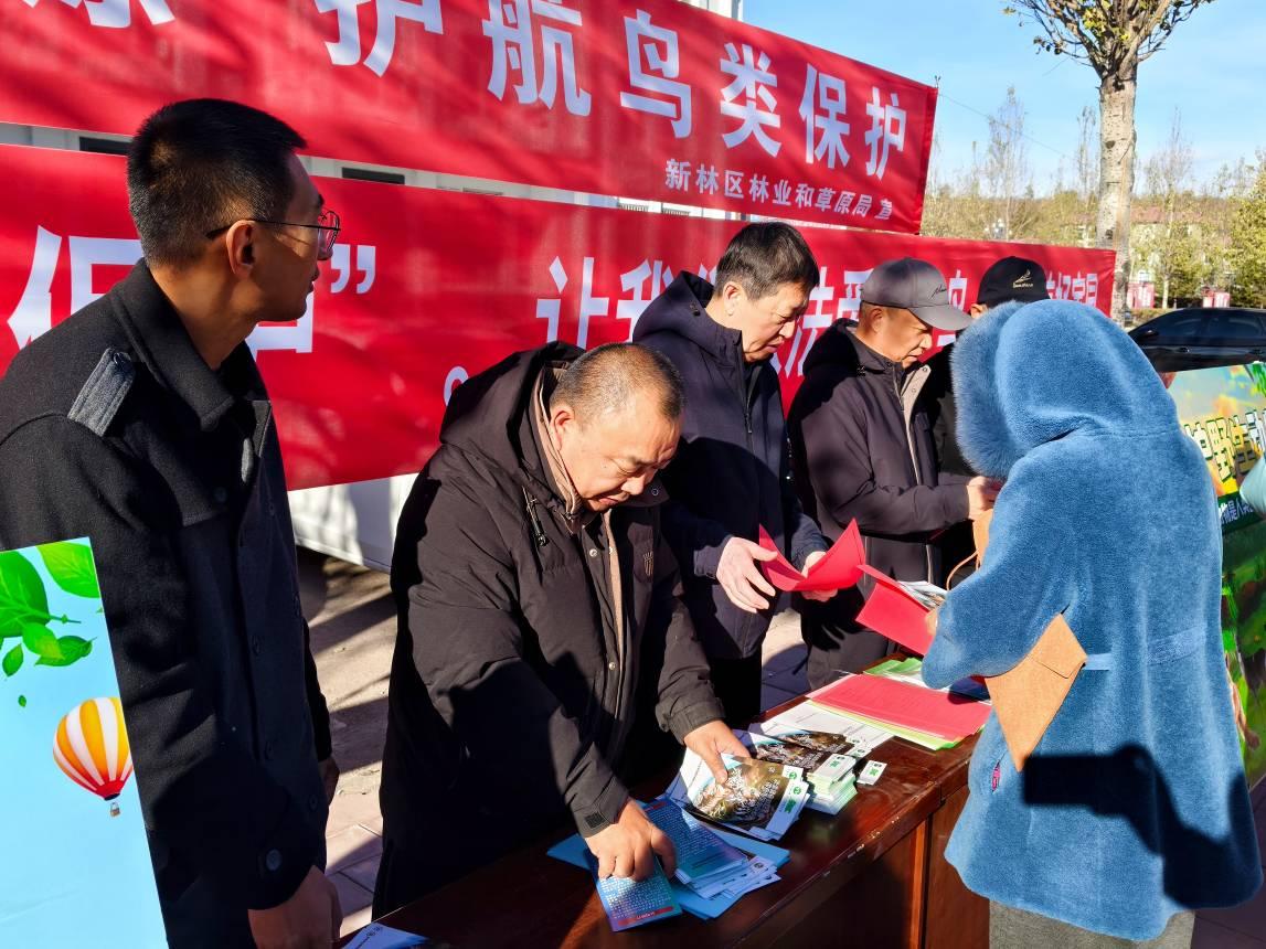 “大家看這本《鳥類保護法律常識》,這是中華秋沙鴨,它是國家一級重點保護野生動物,近些年全國有不少人因誤捕被追責?!被顒蝇F(xiàn)場,工作人員以“法治+科普”為核心搭建宣傳陣地,懸掛“聚合法治資源,護航鳥類保護”“讓我們依法愛鳥護鳥,共建美好家園”等主題橫幅,設立鳥類保護知識展示宣傳牌,向過往群眾發(fā)放《鳥類保護法律常識》《常見鳥類識別手冊》等材料,并結(jié)合實際案例,詳細解讀重點保護鳥類的相關法律法規(guī),闡明轄區(qū)內(nèi)各種重點保護鳥類在生態(tài)系統(tǒng)中的重要作用,以及非法捕獵、傷害重點保護鳥類需承擔的法律責任,引導群眾樹立“保護鳥類就是保護生態(tài)環(huán)境”的法治觀念與責任意識。