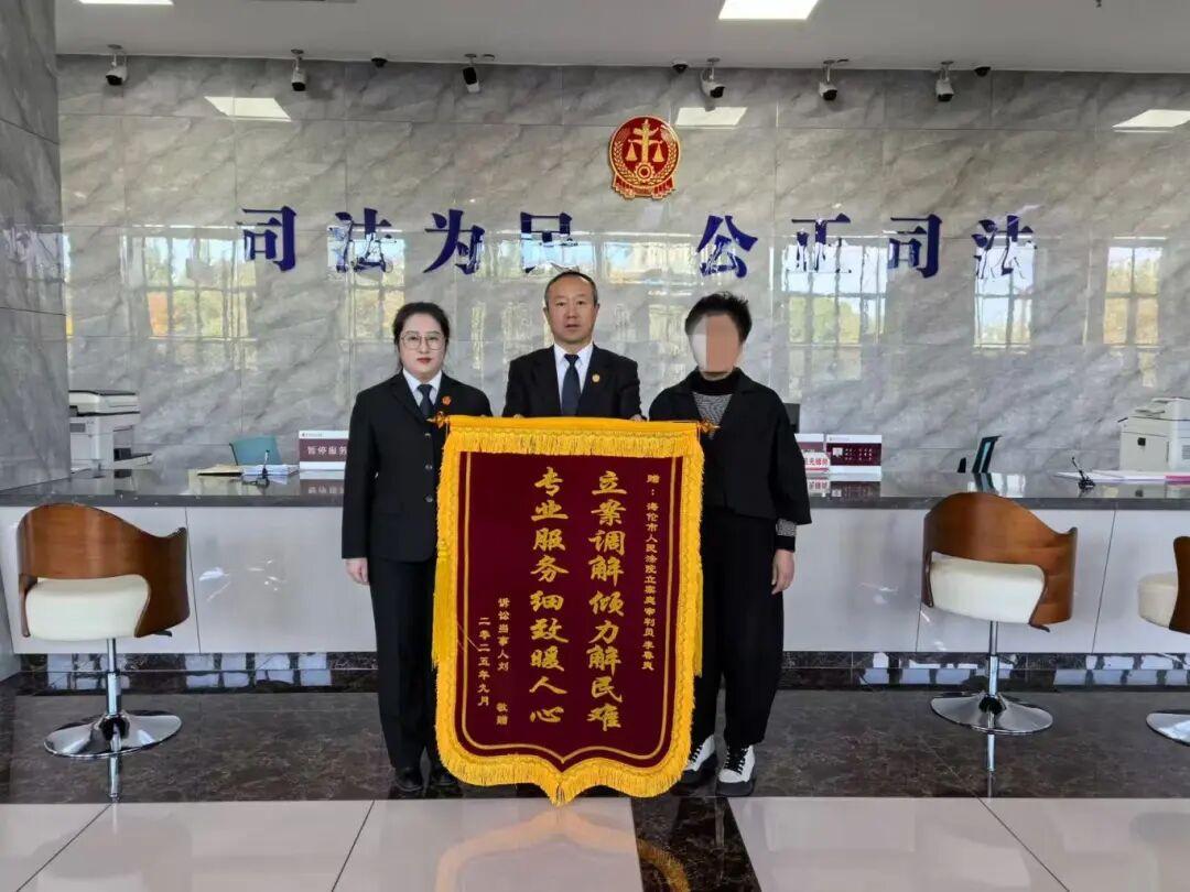 黑龍江經(jīng)濟(jì)網(wǎng)訊(董慧瑩 鄧育彤)10月16日下午,海倫市人民法院訴訟服務(wù)中心內(nèi)暖意融融。當(dāng)事人劉女士將一面寫有“立案調(diào)解傾力解民難 專業(yè)服務(wù)細(xì)致暖人心”的錦旗送到法官李春爽手中,感謝法院以耐心細(xì)致的調(diào)解,妥善化解了困擾其全家多日的繼承糾紛,讓親情在法律框架下得以修復(fù),讓母子倆解開隔閡、重歸于好。