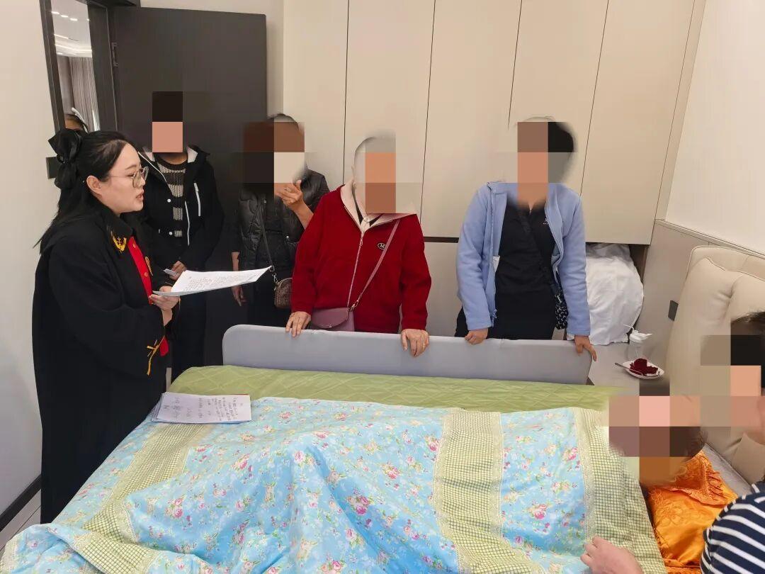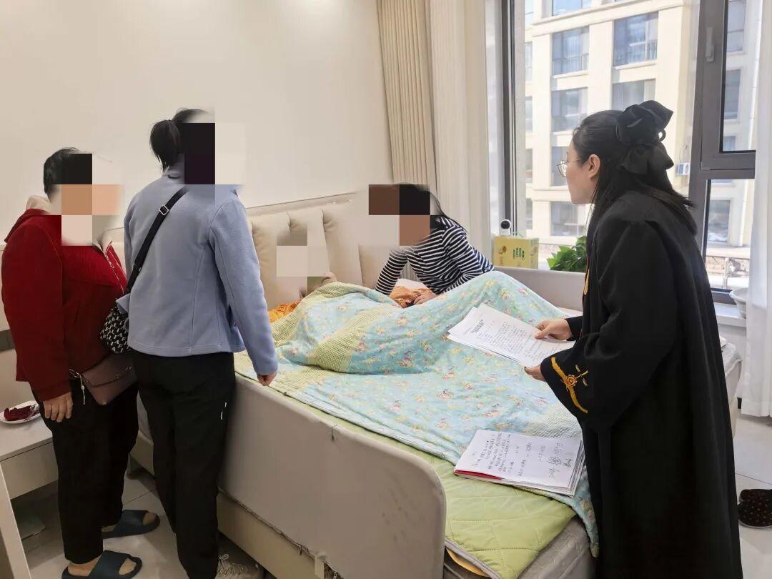 開庭當(dāng)天,干警們一進(jìn)老人家門,就忙著搭建“臨時(shí)法庭”;法官?zèng)]有用急促的問話推進(jìn)流程,反而把語速放慢了兩倍,拉著老人的手耐心傾聽——這份“把當(dāng)事人當(dāng)家人”的細(xì)致,漸漸融化了老兩口心中的芥蒂,讓他們?cè)敢獬ㄩ_心扉溝通。調(diào)解結(jié)束后,法官特意蹲在張爺爺?shù)牟〈策叾冢骸昂罄m(xù)的法律文書我們會(huì)直接送過來,您和阿姨要是有任何疑問,隨時(shí)給我們打電話,不用來回跑法院?!甭牭竭@話,張爺爺看著干警們收拾東西的背影,渾濁的眼睛里忽然泛起了微光,他輕輕吐出兩個(gè)字:“謝謝”。這簡(jiǎn)單的兩個(gè)字,藏著老人及家人對(duì)“司法不缺位”的深深感激,更映出了人民群眾對(duì)“司法為民”的熱切期盼。