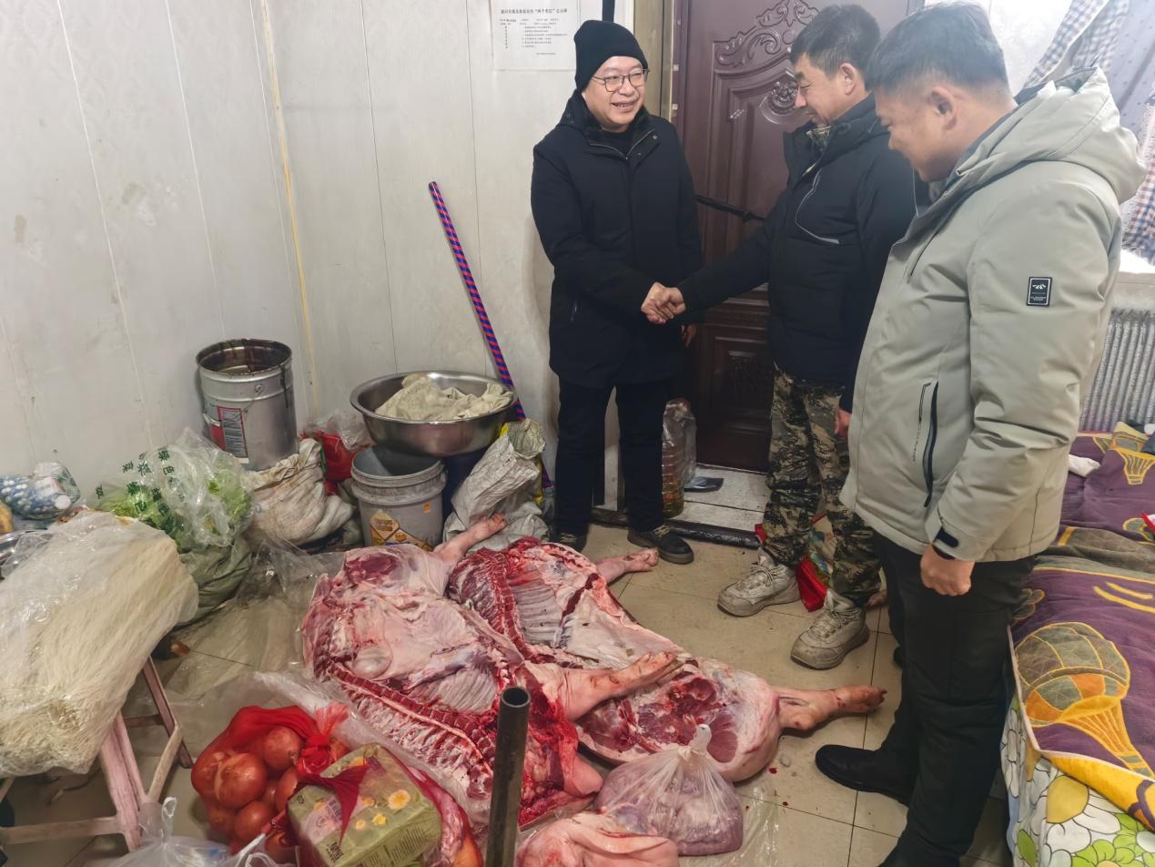 “冬季深山作業(yè),職工的御寒保暖和飲食保障是我們最牽掛的事?!背焙恿謭鍪冀K堅持“職工的‘心上事’就是林場的‘要緊事’”理念,提前與各作業(yè)組精準(zhǔn)對接,深入了解一線實際困難與需求,針對性籌備慰問物資。深入冬季營林生產(chǎn)作業(yè)點,開展歲末一線慰問活動,慰問車隊滿載 390 斤豬肉、新鮮水果、各類蔬菜、防寒棉衣、保暖手套等冬季防護(hù)用品和生活物資。抵達(dá)作業(yè)點后,慰問組詳細(xì)查看了臨時板房的取暖設(shè)備運行、食宿環(huán)境保障等情況,仔細(xì)檢查供暖管線、消防設(shè)施等安全隱患點,確保冬季生產(chǎn)生活安全?!耙归g宿舍溫度能達(dá)到多少?”、“日常食材儲存是否方便”,詢問大家的工作生活狀況,傾聽職工訴求。針對長期駐守作業(yè)點可能出現(xiàn)的食材新鮮度不足問題,林場黨支部副書記表示,“從下周起,定期配送新鮮蔬菜,保障大家營養(yǎng)均衡,讓大家吃得放心、干得舒心?!睜I林副場長圍繞冬季營林作業(yè)規(guī)范、機(jī)械設(shè)備防寒維護(hù)等內(nèi)容開展專業(yè)指導(dǎo),提醒隊員們嚴(yán)守安全生產(chǎn)規(guī)程,做好防寒防凍措施,確保生產(chǎn)安全與作業(yè)質(zhì)量雙達(dá)標(biāo)。