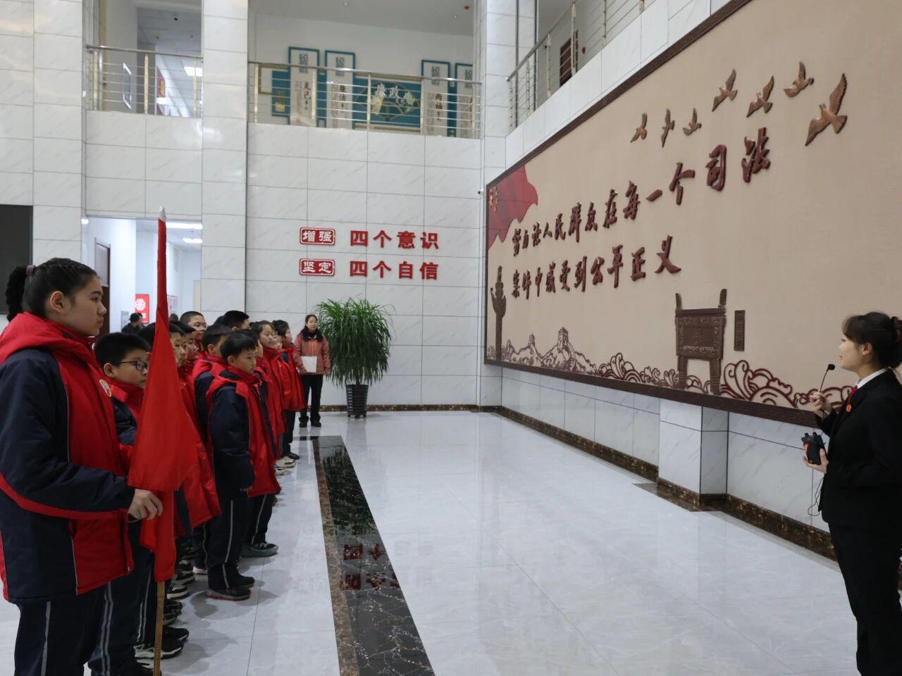 在法院工作人員的引導下,同學們依次參觀了體現司法便民的訴訟服務中心、充滿人文氣息的和合文化長廊、莊嚴肅穆的審判庭、弘揚清正之風的廉政文化長廊、傳承紅色基因的黨史教育室、展現干警英姿的體能訓練中心以及書香彌漫的讀書學習室。